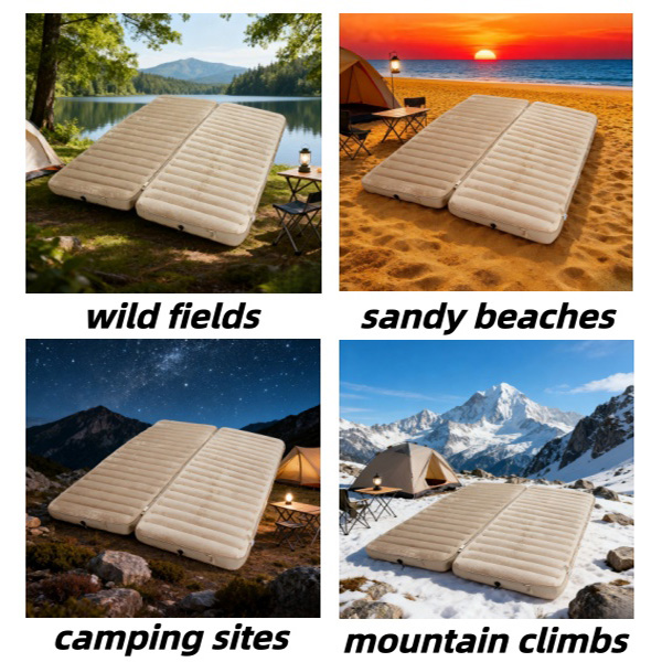 Unlike ordinary inflatable mattresses that often make rustling or squeaking noises when turning over, the Dreamate outdoor mattress focuses on silent comfort. The connection between the cotton velvet surface and the TPU airbag uses a soft, noise - reducing adhesive, and the stitching of all fabric layers adopts a “flat lock” process—eliminating friction between materials that causes noise. Even if you move frequently at night, such as shifting from side to back or adjusting your sleeping position, the mattress won’t make obvious sounds. This is especially friendly for light sleepers, couples who share the mattress, or camping scenarios where you need to avoid disturbing companions in the same tent.