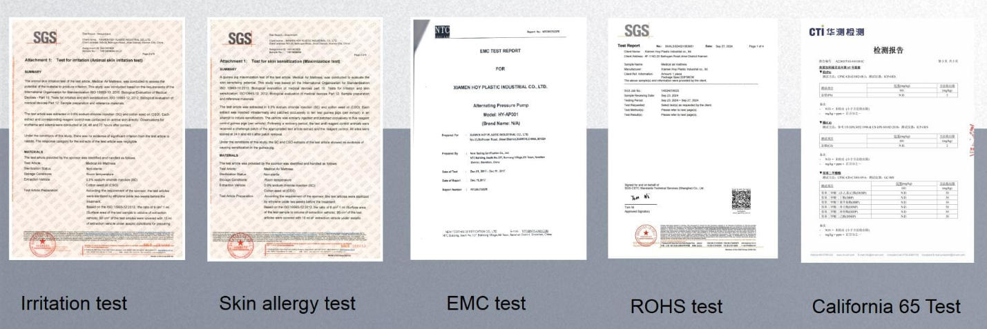 All Mattress products with high quality control, and obtain material inspection report and important certifications, such as Irriation test report, skin allergy test report, EMC test report, ROHS certification, California 65 Test report.